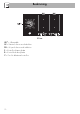 Beskrivning Kokzoner med gas SV 2.2 Symboler Kokzoner med induktion On/Off-knapp: Startar och stänger av spishällen. Bakre kokzon Främre kokzon Pausknapp: Avbryter tillagningen. Knapp för funktionsspärr: Förhindrar att man rör kontrollerna av misstag. Vred brännare Knapp för värdeökning: Ökar tillagningstiden eller tiden för timern. Knapp för värdeminskning: Minskar tillagningstiden eller tiden för timern. Används för att starta och reglera hällens brännare.