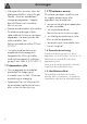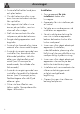 Anvisningar • Använd alltid kokkärl med jämn och plan botten. • Om det kokar över eller rinner över ska man torka bort vätskan från spishällen. • Var noga att inte hälla ut sura ämnen på spishällen, som t.ex. citronsaft eller vinäger. • Ställ inte tomma kastruller eller stekpannor på tända kokzoner. • Rengör aldrig apparaten med ångstråle. • Använd inte slipande eller sträva material eller vassa metallskrapor.