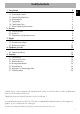 Sisällysluettelo 1.1 1.2 1.3 1.4 1.5 1.6 1.7 Turvallisuuteen liittyvät yleiset varoitukset Valmistajan vastuu Laitteen käyttötarkoitus Hävittäminen Tyyppikilpi Tämä käyttöohje Miten käyttöohjetta luetaan 2 Kuvaus 2.1 Yleinen kuvaus 2.2 Symbolit 2.3 Saatavana olevat lisävarusteet 3 Käyttö 3.1 Varoituksia 3.2 Ensimmäinen käyttö 3.3 Keittotason käyttö 4 Puhdistus ja hoito 4.1 Varoituksia 4.2 Laitteen puhdistus 5 Asennus 5.1 5.2 5.3 5.4 5.5 5.6 5.