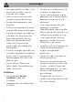 Anvisningar • Ytan i glaskeramik får inte användas som avlastningsyta. • Vid repor eller sprickor, eller om glaskeramikhällens yta skulle gå sönder, ska apparaten omedelbart stängas av. Koppla bort eltillförseln och kontakta teknisk service. SV • Vid behov används en tryckregulator som uppfyller kraven i gällande föreskrifter. • Efter varje ingripande kontrolleras att åtdragningsmomentet för gaskopplingarna är mellan 10 Nm och 15 Nm.