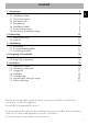 Innehåll 1.1 1.2 1.3 1.4 1.5 1.6 1.7 1.8 Allmänna säkerhetsanvisningar Identifikationsdekal Tillverkarens ansvar Apparatens syfte Bortskaffning Identifikationsdekal Denna bruksanvisning Så här läser du bruksanvisningen 2 Beskrivning 2.1 Allmän beskrivning 2.2 Symboler 3 Användning 3.1 Anvisningar 3.2 Första användningstillfället 3.3 Användning av hällen 4 Rengöring och underhåll 4.1 Anvisningar 4.2 Rengöring av apparaten 5 Installation 5.1 5.2 5.3 5.4 5.5 5.6 5.