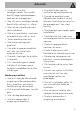 Advarsler • Ikke bruk grove eller slipende materialer, eller spisse metallskraper. • Ikke bruk rengjøringsprodukter som inneholder klor, ammoniakk eller blekemiddel på ståldeler, eller deler med metallisk overflatefinish (f.eks. anodisering, fornikling eller kromatering). • Ikke bruk slipende eller etsende rengjøringsmidler på glassdeler (f.eks. produkter i pulverform, flekkfjernere og stålsvamper). • Ikke vask avtakbare deler, f.eks. platetoppens rister, brennerkronene og -dekslene i oppvaskmaskin.