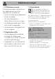 Installation SV 5.8 För installatören • Kontakten ska vara lättåtkomlig efter installationen. Nätkabeln får inte vikas eller snurras. • Apparaten ska installeras i enlighet med aktuella installationsscheman. • Man får inte försöka att lossa eller belasta kopplingens gängade vinkeldel. Man riskerar då att skada denna del av apparaten vilket kan ogiltigförklara tillverkarens garanti. • Använd vatten och tvål på alla kopplingar för att kontrollera om det förekommer gasläckor.