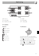 Beskrivning 90 cm AUX = Reserv SR = Halvsnabb RR = Snabb reducerad R = Snabb UR = Ultrasnabb UR* = Ultrasnabb 2.2 Symboler Kokzoner Vred brännare Främre vänster SV Central vänster Bakre vänster Central Bakre höger Central höger Främre höger Används för att starta och reglera hällens brännare. Tryck in och vrid vreden moturs till värdet för att tända motsvarande brännare. Vrid vreden till ett läge mellan maximal och minimal effekt för att reglera lågan.