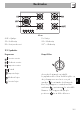 Beskrivelse 90 cm AUX = Hjælpe SR = Halvhurtig RR = Hurtig reduceret R = Hurtig UR = Ultrahurtig UR* = Ultrahurtig 2.2 Symboler Kogezoner Knap til blus Forreste venstre Midterste venstre Bagerste venstre Bagerste højre Midterste højre Forreste højre Anvendes til at tænde og indstille kogepladens blus. Man skal blot trykke og dreje knapperne mod uret over på værdien for at tænde de tilsvarende blus. Drej knapperne i området mellem maksimum og minimum for at indstille flammen.