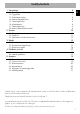 Sisällysluettelo 1.1 1.2 1.3 1.4 1.5 1.6 1.7 1.8 Turvallisuuteen liittyvät yleiset varoitukset Tyyppikilpi Valmistajan vastuu Laitteen käyttötarkoitus Tämä käyttöohje Hävittäminen Tämä käyttöohje Miten käyttöohjetta luetaan 2 Kuvaus 2.1 Yleinen kuvaus 2.2 Symbolit 2.3 Saatavana olevat lisävarusteet 3 Käyttö 3.1 Varoituksia 3.2 Ensimmäinen käyttökerta 3.3 Keittotason käyttö 4 Puhdistus ja hoito 4.1 Varoituksia 4.2 Laitteen puhdistus 5 Asennus 5.1 5.2 5.3 5.4 5.5 5.