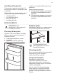 Avfrostning av kylskåpet Långa uppehåll Frost elimineras automatiskt från kylfackets förångare vid normal användning. Det avfrostade vattnet töms ut via en ränna i en särskild behållare som sitter ovanför kompressorn på kylskåpet baksida, där vattnet avdunstar.