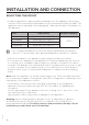 INSTALLATION AND CONNECTION SELECTING THE ROOM • Install the appliance in a dry and well ventilated room. The appliance will operate correctly if the environment temperature is in the interval specified in the table. The appliance class is indicated on the rating plate / label with the basic information on the appliance.