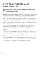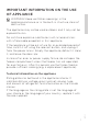 IMPORTANT NOTES AND PRECAUTIONS i BEFORE USING THE APPLIANCE FOR THE FIRST TIME Before connecting the appliance to the power mains, please read carefully the instructions for use which describe the appliance and its correct and safe use. The instructions apply to several appliance types/models; thus, settings or equipment may be described herein which is not available in your appliance.