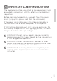 ! IMPORTANT SAFETY INSTRUCTIONS The appliance must be connected to the power mains and grounded in compliance with the effective standards and regulations. Before cleaning the appliance, unplug it from the power mains (unplug the power cord from the wall outlet). If the power cord is damaged, it must be replaced by a service technician or other adequately trained person. If LED lighting does not work, call a service technician.