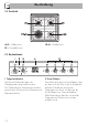 Beschreibung 3 Funktionsknebel Lüfter Die verschiedenen Funktionen des Backofens sind den unterschiedlichen Gararten angepasst. Nach Wahl der gewünschten Funktion die Gartemperatur mit dem Temperaturknebel einstellen. Zur Anzeige der aktuellen Uhrzeit, zur Einstellung von programmierten Garvorgängen und zur Einstellung des Minutenzählers. Es können Positionen zwischen den Zahlen gewählt werden. Der Minutenzähler aktiviert nur den Signalgeber, er unterbricht den Garvorgang nicht.