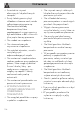 Ostrzeżenia • Ewentualnie używać drewnianych lub plastikowych narzędzi. • Ruszty i blachy powinny być wkładane w boczne ramki, aż do całkowitego zatrzymania się. Mechaniczne blokady bezpieczeństwa, które zapobiegają ich wyjęciu powinny być odwrócone w dół i w kierunku tylnej części komory pieczenia. • Nie siadać na urządzeniu. • Nie stosować pary do czyszczenia urządzenia. • Nie zatykać otworów, szczelin wentylacyjnych i odprowadzających ciepło.