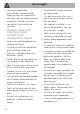 Anvisningar • Lämna inte apparaten oövervakad i samband med tillagning som kan frigöra fetter eller oljor som kan fatta eld om de överhettas. Var ytterst försiktig • Lämna inte kvar föremål på spishällen. • ANVÄND UNDER INGA OMSTÄNDIGHETER APPARATEN FÖR UPPVÄRMNING AV RUM. • Spruta inte med sprayprodukter i närheten av ugnen. • Använd inte kärl eller behållare i plast vid tillagning av mat. • Sätt inte in stängda skålar eller behållare i ugnen.