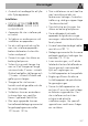 Installation användas (se ”Tabeller över egenskaper för brännare och munstycken”). Inställning av lägsta effekt för flytande gas Vrid skruven som sitter vid sidan om kranens stång medurs och dra åt den helt. Inställning av lägsta effekt för metangas eller stadsgas Tänd brännaren och vrid den till minimiläge. Ta bort gaskranens vred och vrid justerskruven vid sidan om kranens stång (beroende på modell) tills korrekt minimilåga erhålls. Montera tillbaka vredet och kontrollera att brännarens låga är stabil.