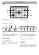 Beschrijving 5 fornuisknoppen Koelventilator Voor het ontsteken en regelen van de branders van de kookplaat. Druk de knoppen in en draai ze linksom op om de desbetreffende branders te ontsteken. Regel de vlam door de knoppen te draaien op de zone tussen de hoogste en de laagste stand. De ventilator koelt de oven en treedt in werking tijdens de bereiding. De ventilator produceert een regelmatige luchtstroom die aan de achterkant van het apparaat naar buiten stroomt.