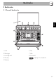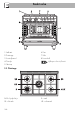 Beskrivelse 1 Bakkant 2 Platetopp 3 Kontrollpanel 4 Ovnslys 5 Pakning 6 Dør 7 Vifte 8 Bunnskuff Hyllespor for rist/brett 2.