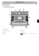 Beschrijving NL 2.3 Bedieningspaneel 1 Klok programmeereenheid 4 Functieknop Handig voor de weergave van het actuele tijdstip, de geprogrammeerde bereidingen en voor de instelling van de kookwekker. De verschillende functies van de oven zijn geschikt voor verschillende bereidingswijzen. Nadat u de gewenste functie heeft geselecteerd, moet u de kooktemperatuur instellen met de temperatuurknop. 2 Temperatuurknop Met deze knop kan de temperatuur van de bereiding geselecteerd worden.
