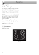 Description 2.3 Symbols Cooking zones ON/OFF key Front left Turns the hob on or off. Rear left Controls lock key Activates or deactivates the controls lock if pressed for 3 seconds. Central Rear right Front right Increase key Central right Increases the power level or cooking time. Front (30 cm model only) Decrease key Rear (30 cm model only) Reduces the power level or cooking time. Timer key (on some models only) Activates the minute minder or the automatic shut-down timer.