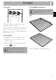 3.3 Using the accessories Tray rack Racks and trays The tray rack has to be inserted into the tray. In this way fat can be collected separately from the food which is being cooked. Racks and trays have to be inserted into the side guides until they come to a complete stop. • The mechanical safety locks that prevent the rack from being taken out accidentally have to face downwards and towards the oven back.