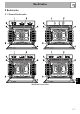 Beskrivelse Multifunktionsmodeller Modeller med pizzaplade 1 Betjeningspanel 2 Lys 3 Tætningsliste 4 Låge 278 5 Ventilator 6 Støtterammer til riste/plade 7 Pizzaplade Plade til ramme