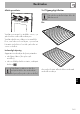 Anvendelse 3.3 Anvendelse af tilbehøret Bradepanderist Riste og bradepander Bradepanderisten skal indsættes inde i bradepanden. Således er det muligt at opsamle fedtet separat fra maden som skal tilberedes. Riste og bradepander skal indsættes i sideskinnerne indtil stoppunktet. • De mekaniske sikkerhedslåse som forhindrer utilsigtet udtrækning af risten skal vende nedad, og mod ovnens bageste del.