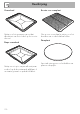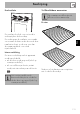 Gebruik 3.3 Gebruik van de accessoires Rooster voor ovenplaat Roosters en ovenschalen Het rooster voor ovenplaat wordt in de plaat geplaatst. Zo wordt het vet apart van het voedsel opgevangen tijdens de bereiding. NL Roosters en ovenschalen moeten in de zijgeleiders worden geplaatst tot aan het eindpunt. • De mechanische veiligheidsblokkering om ongewenste verwijdering van de roosters te voorkomen moeten naar beneden en naar de binnenzijde van de oven gericht zijn.
