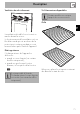Utilisation Grille pour lèchefrite Grilles et lèchefrites Introduisez la grille pour lèchefrite à l'intérieur de la lèchefrite. On peut ainsi recueillir les graisses séparément des aliments en train de cuire. Les grilles et les lèchefrites doivent être insérées dans les glissières latérales jusqu'au point d'arrêt. • Les dispositifs de blocage mécanique de sécurité empêchent l'extraction accidentelle de la grille et doivent être tournés vers le bas et vers l'arrière du four. FR 3.