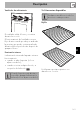 Uso Rejilla para bandeja Rejillas y bandejas La rejilla para bandeja debe ser introducida dentro de la bandeja. De esta forma, es posible recoger la grasa separadamente de los alimentos en cocción. Rejillas y bandejas deben introducirse en guías laterales hasta hacer tope. • Los bloques mecánicos de seguridad que impiden la extracción accidental de la rejilla deben ser orientados hacia abajo y hacia la parte posterior del horno. ES 3.