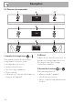 Description 2.2 Panneau de commandes 1 Manette de la température Cette manette permet de sélectionner : • la puissance des micro-ondes, • la température de cuisson, • la durée d’une fonction, • des cuissons programmées, • l’heure actuelle, • l’allumage ou l’extinction de la lampe à l’intérieur de l’appareil. 106 2 Afficheur Il affiche l’heure actuelle, la fonction, la puissance et la température de cuisson sélectionnées ainsi que le temps éventuellement attribué.