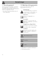 Anvendelse 3.1 Bemærkninger Forhøjet temperatur inde i ovnrummet under brugen Fare for forbrændinger • Hold lågen lukket under tilberedningen. • Beskyt hænderne med grillhandsker under håndtering af madvarer inde i ovnrummet. • Rør ikke ved varmeelementerne inde i ovnrummet. • Hæld ikke vand direkte på de meget varme plader. • Lad ikke børn nærme sig apparatet mens det er i funktion. Ukorrekt anvendelse Risiko for skader på de emaljerede overflader • Dæk ikke ovnens bund med aluminiumsfolie eller stanniol.