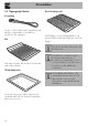 Anvendelse 2.5 Tilgængeligt tilbehør Rist til bradepande Kogestang Bruges i en beholder under opvarmning af væsker, nødvendig for at undgå en forsinkelse af kogningen. Rist Skal lægges oven på bradepanden, og bruges til tilberedning af fødevarer som kan dryppe. På enkelte modeller følger ikke alt tilbehør med. Anvendes til støtte af beholdere med mad under tilberedning.
