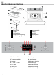 DE Beschreibung des Gerätes Bedienfeld Türglas Seitenauflage Sicherheitsverriegelung Heißluft Ausgang Kupplungsstück Rollring Drehteller Glasfettpfanne Grillrost 9 10 11 12 1 13 14 3 8 4 41 2 5 6 7 1. Funktionswähler 8. Leistung 2. Temperaturwähler 9. Betriebsdauer 3. Anzeige 10. Auftauen Anzeige 4. "+" und "-"-Taste 11. Uhranzeige 5. OK-Taste 12. Kindersicherung 6. Start-Taste 13. Minuten Anzeige 7. Stop-Taste 14.