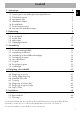 Innehåll 1.1 1.2 1.3 1.4 1.5 1.6 1.7 1.8 Allmänna säkerhetsanvisningar Anvisningar för användning av mikrovågsfunktionen Tillverkarens ansvar Apparatens syfte Identifikationsdekal Bortskaffande Denna bruksanvisning Hur man läser bruksanvisningen 2 Beskrivning 2.1 2.2 2.3 2.4 2.5 Allmän beskrivning Kontrollpanel Andra delar Mikrovågor Tillgängliga tillbehör 3 Användning 3.1 3.2 3.3 3.4 3.5 3.6 3.7 3.8 3.