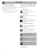 Anvisningar 1.7 Denna bruksanvisning 1.8 Hur man läser bruksanvisningen Denna bruksanvisning utgör en del av apparaten och ska förvaras i sin helhet och alltid finnas inom räckhåll under hela apparatens livstid. • Innan man använder apparaten ska man noga läsa denna bruksanvisning. Följande läsanvisningar gäller för denna bruksanvisning: Anvisningar Allmän information om bruksanvisningar, säkerhet och bortskaffande. Beskrivning Beskrivning av apparaten och dess tillbehör.