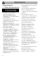 Предупреждения • Не пытайтесь отремонтировать прибор самостоятельно или без помощи квалифицированного техника. • Никогда не вынимайте вилку, дергая за кабель. НАНЕСЕНИЕ ВРЕДА ПРИБОРУ • Запрещается использовать абразивные или коррозионные чистящие средства (например, порошки, пятновыводители и металлические мочалки) для чистки стеклянных частей прибора. При необходимости пользуйтесь деревянными или пластмассовыми кухонными принадлежностями.