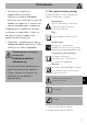 • NIE UŻYWAĆ LUB PRZECHOWYWAĆ MATERIAŁÓW ŁATWOPALNYCH W POBLIŻU URZĄDZENIA. • W POBLIŻU FUNKCJONUJĄCEGO URZĄDZENIA NIE WOLNO UŻYWAĆ PUSZEK SPRAY. • NIE DOKONYWAĆ ZMIAN NA URZĄDZENIU. • Montaż i naprawy powinny być wykonywane przez wykwalifikowany personel zgodnie z obowiązującymi przepisami. • Nigdy nie próbować naprawiać urządzenia samodzielnie lub bez pomocy wykwalifikowanego specjalisty. • Nigdy nie ciągnąć za przewód, aby wyjąć wtyczkę.