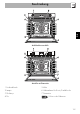 DE Beschreibung Multifunktionsmodelle Modelle mit Pizzastein 1 Bedienblende 2 Lampe 3 Dichtung 4 Tür 5 Lüfter 6 Halterahmen für Roste/Backbleche 7 Pizzastein Schiene des Rahmens 125