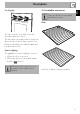 3.3 Using the accessories Tray rack Racks and trays The tray rack has to be inserted into the tray. In this way fat can be collected separately from the food which is being cooked. Racks and trays have to be inserted into the side guides until they come to a complete stop. • The mechanical safety locks that prevent the rack from being taken out accidentally have to face downwards and towards the oven back.