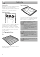 Anvendelse 3.3 Anvendelse af tilbehøret Rist til bradepande Riste og bradepander Risten til bradepanden indsættes i bradepanden. På denne måde er det muligt at opsamle fedtet separat fra maden, som skal tilberedes. Riste og bradepander skal indsættes i sideskinnerne, indtil stoppunktet. • De mekaniske sikkerhedslåse, som forhindrer utilsigtet udtrækning af risten, skal vende nedad, og mod ovnrummets bageste del. 3.