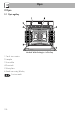Opis Poziomy Głęboka blacha Urządzenie posiada poziomy do umieszczania na nich blach i rusztów na różnych wysokościach. Wysokości ustala się od dołu do góry (patrz 2.1 Opis ogólny). Wentylator Do gromadzenia tłuszczu wydzielającego się z produktów umieszczonych na górnym ruszcie i pieczenia tortów, pizzy i ciast. Wentylator chłodzi urządzenie i uruchamia się podczas pieczenia.