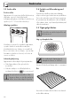 Installation Låsebøsninger Apparatets pladsbehov (mm) DA 1. Fjern bøsningspropperne, som er indsat på apparatets facade. 2. Placér apparatet i indbygningen. 3. Fastgør apparatet til køkkenelementet med skruerne. 4. Dæk bøsningerne med propperne, som blev taget af før.