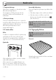 Bruk 3 Bruk 3.1 Advarsler Høy temperatur inni ovnsrommet ved bruk Fare for forbrenninger • Hold døren lukket under tilberedning. • Beskytt hendene med grillvotter når mat flyttes inne i ovnsrommet. • Ikke berør varmeelementene inne i ovnsrommet. • Ikke hell vann direkte på svært varme bakebrett. • Ikke la barn oppholde seg i nærheten av produktet under bruk. Feilaktig bruk Fare for skader på overflater • Ikke dekk til bunnen i ovnsrommet med aluminiumsfolie.