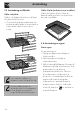 Användning 3.3 Användning av tillbehör Galler till plåt (endast på vissa modeller) Galler och plåtar Gallret ska sättas i plåten. Man kan därmed samla upp fettet som frigörs från den mat som tillagas. Gallren och plåtarna ska föras in så långt det går på sidoskenorna. • De mekaniska säkerhetsspärrarna som hindrar att gallret glider ut av misstag ska vara vända nedåt och mot ugnens insida. 3.4 Användning av ugnen Starta ugnen För försiktigt in gallren och plåtarna i ugnen så långt det går.
