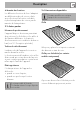 Utilisation 3.3 Utilisation des accessoires Grilles et lèchefrites Les grilles et les lèchefrites doivent être insérées dans les glissières latérales jusqu’au point d’arrêt. • Les dispositifs de blocage mécanique de sécurité qui empêchent l’extraction accidentelle de la grille doivent être orientés vers le bas et vers la partie postérieure de la cavité de cuisson. Grille pour lèchefrite (sur certains modèles uniquement) Introduisez la grille pour lèchefrite à l’intérieur de la lèchefrite.