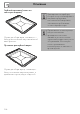 Чистка и уход 3. На многофункциональных моделях имеется промежуточное стекло. Снимите промежуточные стекла, приподнимая их кверху. 5. Вставьте стекла на прежнее место в обратном порядке. 6. Установите внутреннее стекло. Обращая внимание на тщательную центровку 4 стержней, вставьте их в гнезда на дверце духовки, слегка надавив на них. RU 4. Произведите чистку внешнего стекла и предварительно снятых стекол. Для чистки используйте впитывающие кухонные салфетки.