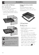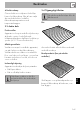 Anvendelse 3.3 Anvendelse af tilbehøret Riste og bradepander Riste og bradepander skal indsættes i sideskinnerne indtil stoppunktet. • De mekaniske sikkerhedslåse, som forhindrer utilsigtet udtrækning af risten, skal vende nedad og mod ovnrummets bageste del. Bradepanderist (kun på enkelte modeller) Risten til bradepanden indsættes i bradepanden. På denne måde er det muligt at opsamle fedtet separat fra maden, som skal tilberedes. 3.