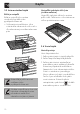 Käyttö 3.3 Lisävarusteiden käyttö Ritilät ja uunipellit Ritilät ja uunipellit tulee asettaa sivutasotukien päälle niiden pysähtymiskohtaan asti. • Mekaanisten turvalukitusten, jotka estävät ritilän tahatonta ulosvetoa tulee olla alasuuntaan ja uunitilan takaosaan päin. Uunipellille tarkoitettu ritilä (vain joissakin malleissa) Uunipellille tarkoitettu ritilä tulee asettaa pellin sisälle. Tällä tavoin voit kerätä rasvan erilleen paistettavasta ruoasta. 3.