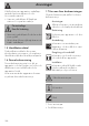 Installation 5.3 Placering Placering av försörjningskabeln Tung apparat Fara för klämskador • Ta hjälp av en andra person vid installation av apparaten. Tryck på öppen lucka Risk för skador på apparaten Värmeutveckling vid drift av apparaten Brandrisk • Kontrollera att möbelns material är värmebeständigt. • Kontrollera att det finns korrekta öppningar i möbeln. • Installera aldrig apparaten i ett luckförsett utrymme eller i en byrå.