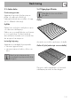 Användning 3.3 Användning av tillbehör Galler till plåt (endast på vissa modeller) Galler och plåtar Gallret ska sättas i plåten. Man kan därmed samla upp fettet som frigörs från den mat som tillagas. Gallren och plåtarna ska föras in så långt det går på sidoskenorna. • De mekaniska säkerhetsspärrarna som hindrar att gallret glider ut av misstag ska vara vända nedåt och mot ugnens insida. 3.4 Användning av ugnen Starta ugnen För försiktigt in gallren och plåtarna i ugnen så långt det går.
