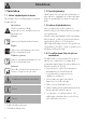 Varoituksia 1 Varoituksia 1.1 Miten käyttöohjetta luetaan Tässä käyttöohjeessa käytetään seuraavia kuvamerkkejä: Varoituksia Yleistietoja liittyen tähän käyttöohjeeseen, turvallisuuteen ja hävittämiseen. Kuvaus Laitteen ja lisävarusteiden kuvaus. Käyttö Laitteeseen ja lisävarusteisiin sekä paistoon liittyvää tietoa. Puhdistus ja hoito Laitteen oikeaan puhdistamiseen ja huoltoon liittyvää tietoa. Asennus Pätevälle teknikolle kuuluvaa tietoa: asennus, käyttöönotto ja säätö.